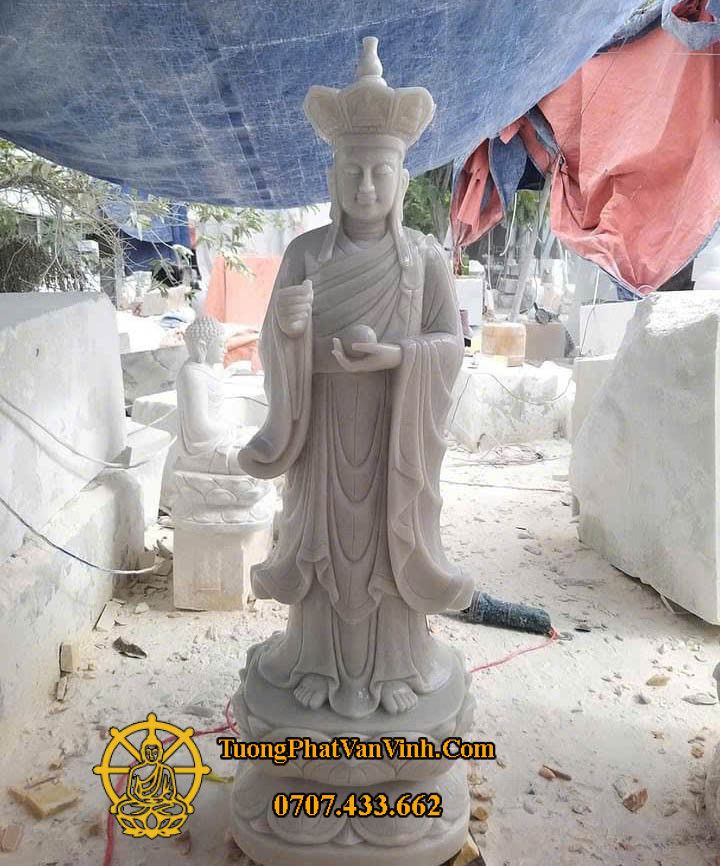 Hình ảnh Tượng Địa Tạng Vương Bồ Tát bằng đá cẩm thạch trắng cao 1,7 mét