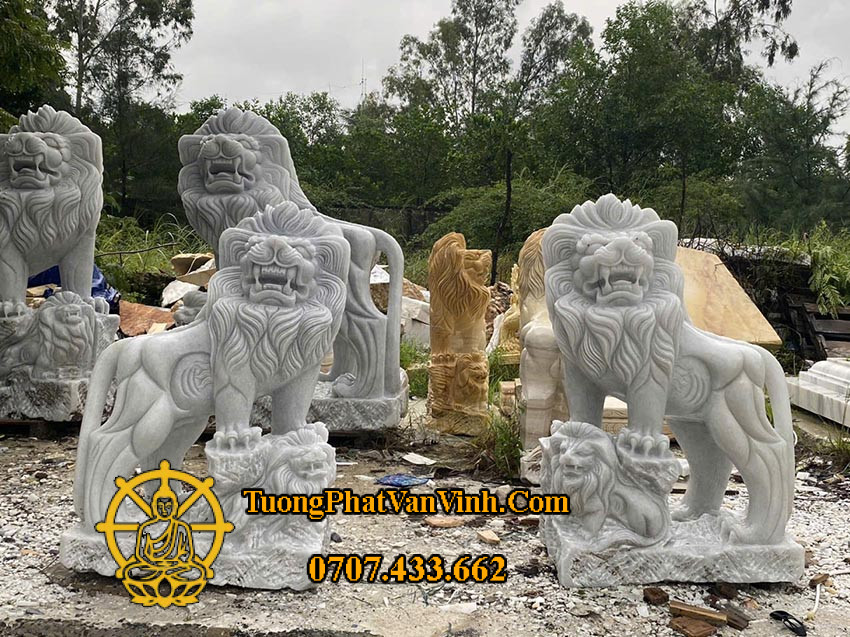 Sư tử là loài vật được mệnh danh là “chúa sơn lâm”, tượng trưng cho sức mạnh, lòng dũng cảm và sự uy nghi. Khi được chế tác từ đá trắng cẩm thạch, tượng sư tử càng toát lên vẻ oai vệ, giúp khẳng định vị thế và quyền lực cho gia chủ hoặc công trình sở hữu.