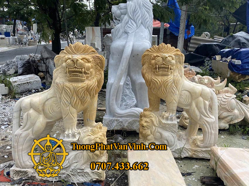 Tượng Sư tử bằng đá vàng tự nhiên cao 1,5 mét là một trong những tác phẩm nổi bật của xưởng Tượng Phật Văn Vĩnh, nơi quy tụ đội ngũ nghệ nhân giàu kinh nghiệm trong điêu khắc đá mỹ nghệ tại Đà Nẵng. Sản phẩm không chỉ mang giá trị thẩm mỹ cao mà còn chứa đựng nhiều ý nghĩa phong thủy, được nhiều công trình lựa chọn để đặt trước cổng, sân vườn, đền chùa hay biệt thự.