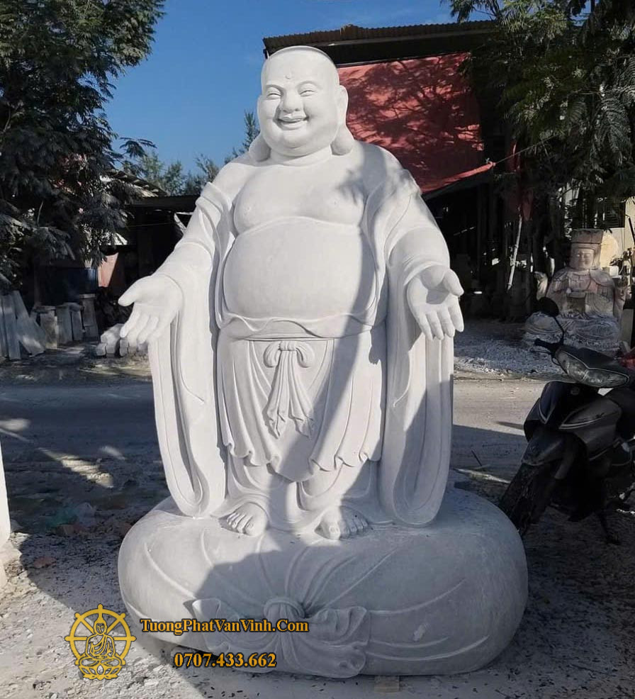 Tượng Phật Di Lặc Ban Phước Lành bằng đá cẩm thạch trắng tự nhiên cao 1,7 mét là một trong những tác phẩm điêu khắc tâm linh mang vẻ đẹp trang nghiêm, phúc hậu và tràn đầy năng lượng tích cực. Tác phẩm được chế tác hoàn toàn thủ công tại xưởng Tượng Phật Văn Vĩnh, nơi nổi tiếng với nghệ thuật tạc tượng đá tinh xảo, chuẩn mực và tôn nghiêm.