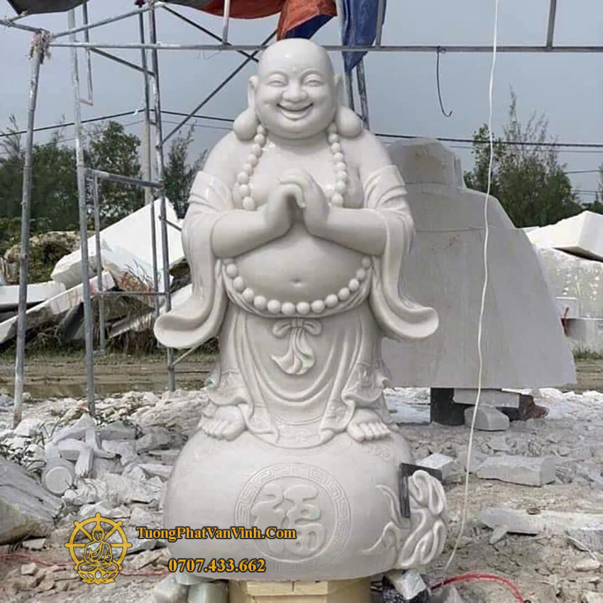Hình ảnh sản phẩm Tượng Phật Di Lặc Chúc Phúc bằng đá trắng tự nhiên cao 1,27 mét