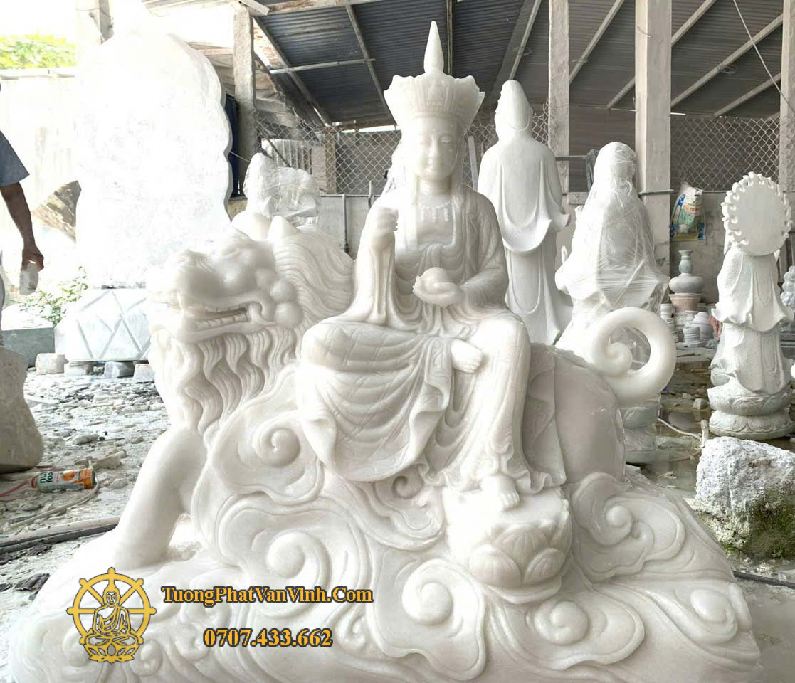 Tượng Địa Tạng Cưỡi Đề Thính bằng đá trắng nguyên khối là một trong những tác phẩm tôn giáo được nhiều chùa, tự viện và gia chủ lựa chọn thờ phụng nhờ vẻ đẹp thanh khiết, thần thái uy nghi và giá trị tâm linh sâu sắc. Với chiều cao 1,4 mét, tác phẩm có kích thước vừa phải, phù hợp cho cả không gian thờ trong nhà lẫn khuôn viên chùa chiền, mang đến cảm giác trang nghiêm, thanh tịnh và an lành.