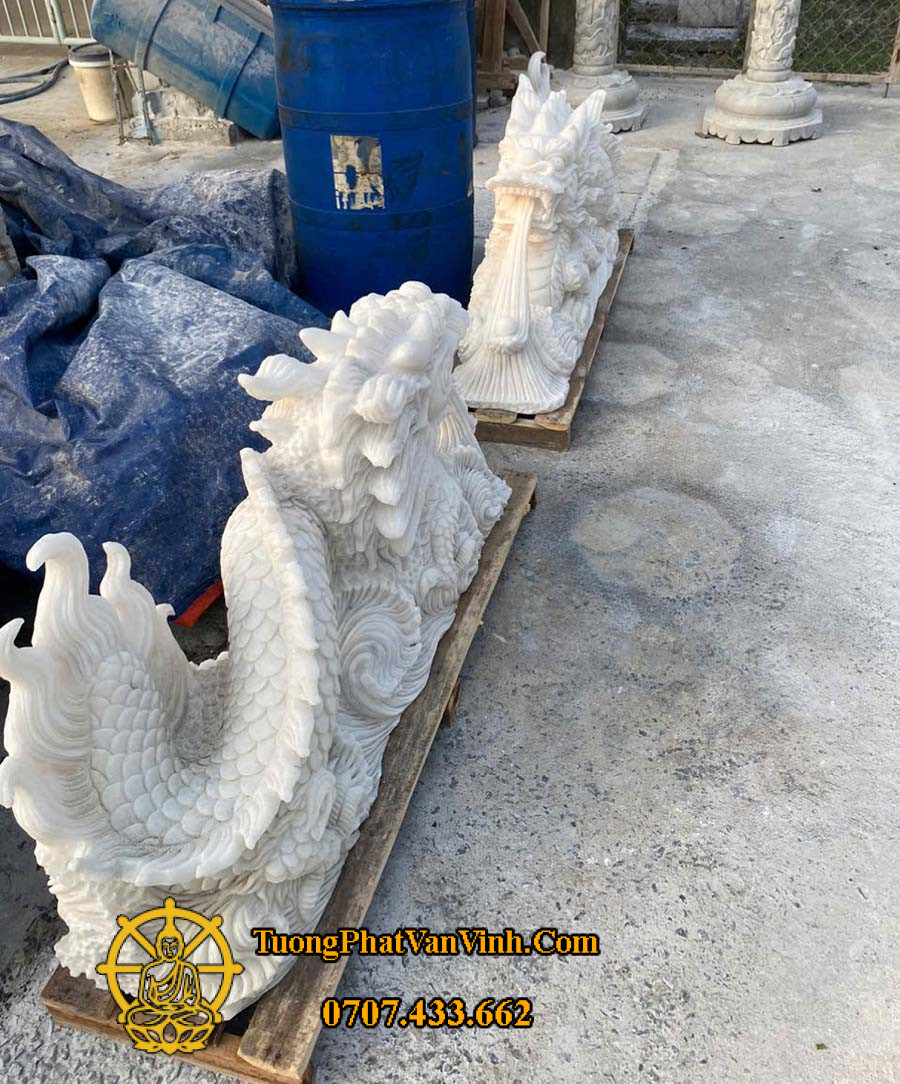 Tượng Ông Rồng bằng đá cẩm thạch trắng được hoàn thiện qua nhiều công đoạn tỉ mỉ, yêu cầu độ chính xác cao và kỹ năng điêu khắc chuyên nghiệp. Quy trình tại xưởng Tượng Phật Văn Vĩnh luôn đảm bảo các tiêu chuẩn về kỹ thuật, thẩm mỹ và phong thủy.