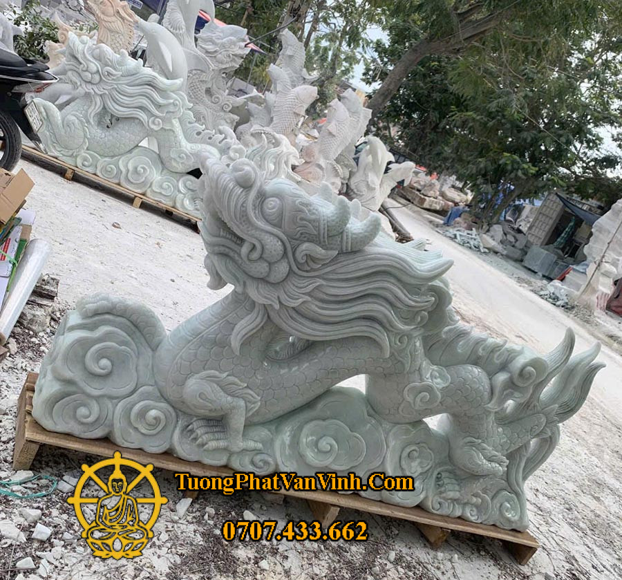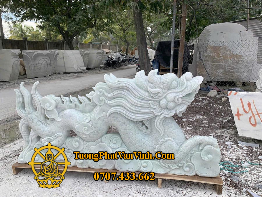 Tượng Ông Rồng bằng đá cẩm thạch trắng xanh dài 1,8 mét là một trong những tác phẩm điêu khắc đặc sắc của Xưởng Tượng Phật Văn Vĩnh, thể hiện đỉnh cao của nghệ thuật chạm khắc đá mỹ nghệ Non Nước – Đà Nẵng. Với kích thước cân đối, chất liệu quý hiếm và đường nét tinh xảo, bức tượng không chỉ mang giá trị thẩm mỹ mà còn chứa đựng chiều sâu phong thủy linh thiêng.