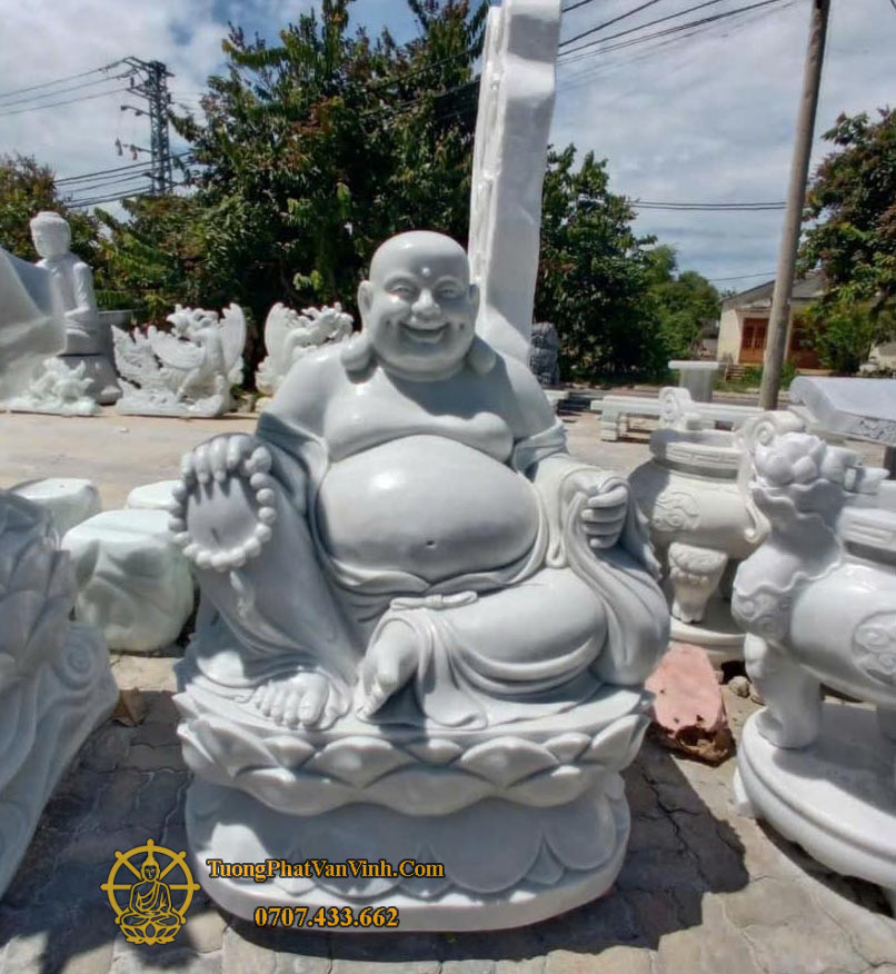 Hình ảnh sản phẩm Tượng Phật Di Lặc bằng đá trắng tự nhiên cao 1,27 mét